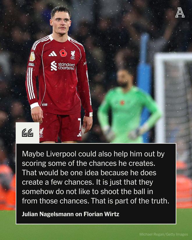 近日,德国主帅纳格尔斯曼再次批评了维尔茨在利物浦的队友。他说这位进攻组织核心因队友决策能力差而受到影响。德国教练纳格尔斯曼重申了他对维尔茨的利物浦队友的批评,称这位组织核心对队友糟糕的射门感到沮丧。在上个月的国际比赛日期间,纳格尔斯曼坚称,当时在英超联赛中创造机会最多的维尔茨未能为新俱乐部进球或助攻,“不是他的错”。三周后,维尔茨在利物浦的11场顶级联赛中还没有直接参与进球,但在欧冠5-1战胜法兰克福的比赛中贡献了两次助攻。纳格尔斯曼承认维尔茨“需要更多时间”来适应新环境,但他坚称,他认为利物浦的不稳定和未能充分利用所创造的机会是这位22岁球员在新赛季开局不佳的原因。e 经理的团队。据天空体育报道,纳格尔斯曼在周一的新闻发布会上表示:“对于沃斯或整个俱乐部来说,情况并不容易。” “今年俱乐部的整体稳定性不如去年,现在融入球队要困难得多。如果你看看对阵曼城的比赛,他们实际上在90分钟内都是一支糟糕的球队。因此,维尔茨很难做出真正的改变。底线是他需要更多时间。这很正常,你会在转会英超的其他球员身上看到同样的情况。” “我们都知道他的能力,这个年龄段的球员状态下滑是很正常的。我们不能指望他连续三年保持同样的水平。相反,我们都应该支持他,让他在这里冷静下来,清醒一下头脑。也许利物浦也可以帮助他利用他创造的一些机会。“他创造了一些机会,所以这是一个解决方案。不过,他似乎并不想将这个机会转化为进球。这当然是事实的一部分。利物浦从勒沃库森收购了维尔茨。他们打破了夏季转会市场的签约纪录。如果满足所有附加条件,这笔交易的总价值可能高达 1.16 亿英镑。